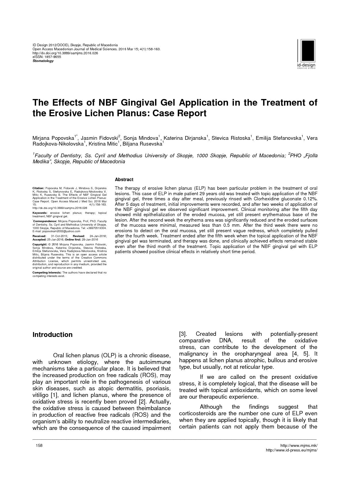 NBF Gingival GelÀÇ erosive lichen planus¿¡ÀÇ Àû¿ë »ç·Ê - Macedonian Journal of Medical Sciences °ÔÀç