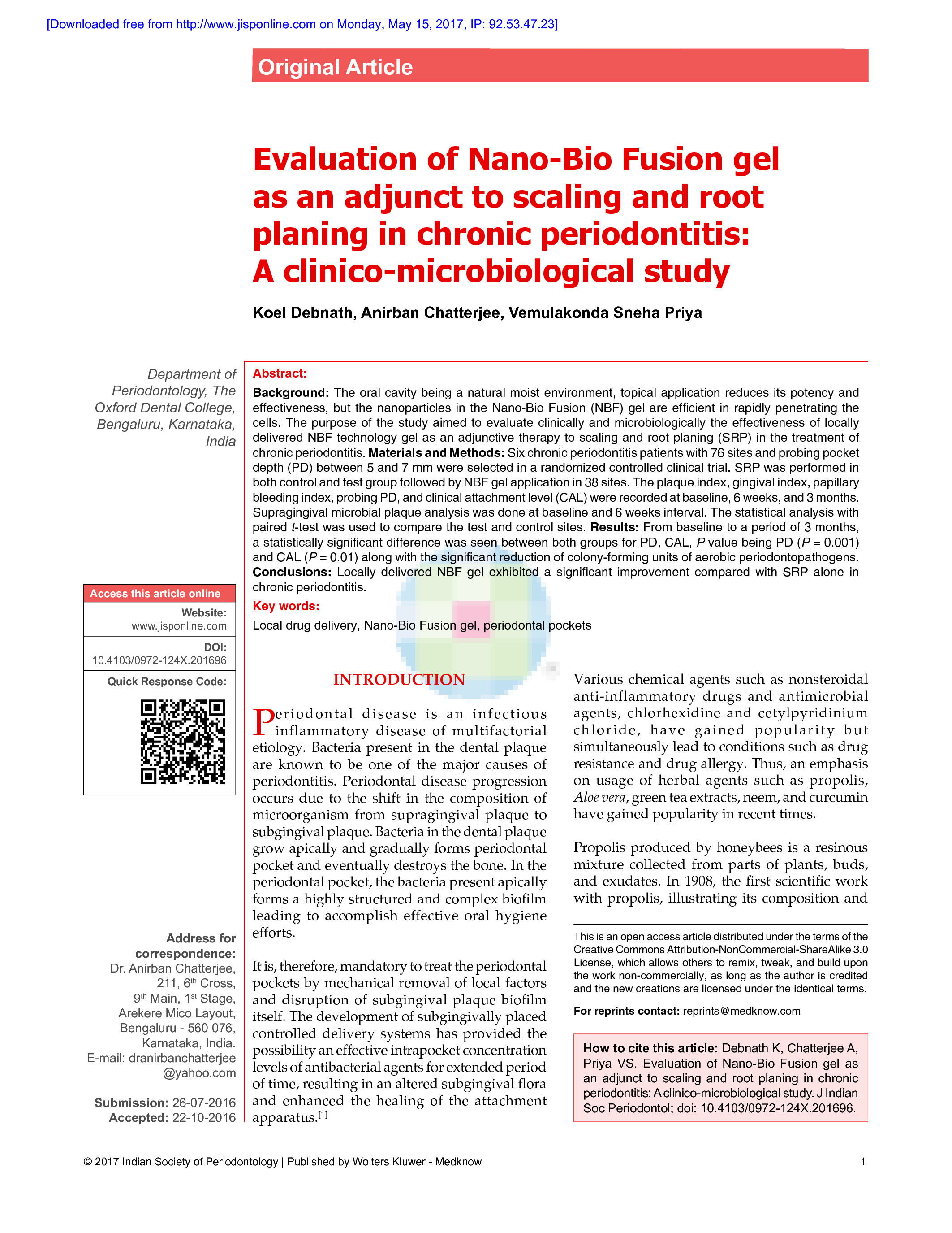 Àεµ Karnataka BengaluruÀÇ ¿Á½ºÆÛµå Ä¡°ú´ëÇÐÀÇ Ä¡ÁÖ º´ÇÐ ºÎ¼¿¡¼ NBF Gingival GelÀÇ ¸¸¼º Ä¡ÁÖ¿° Ä¡·á¸¦ À§ÇÑ ½ºÄÉÀϸµ°ú Ä¡±ÙȰÅüúÀÇ º¸Á¶Á¦·Î½áÀÇ ÀÓ»óÀÌ ÀÌ·ç¾îÁ³½À´Ï´Ù.
