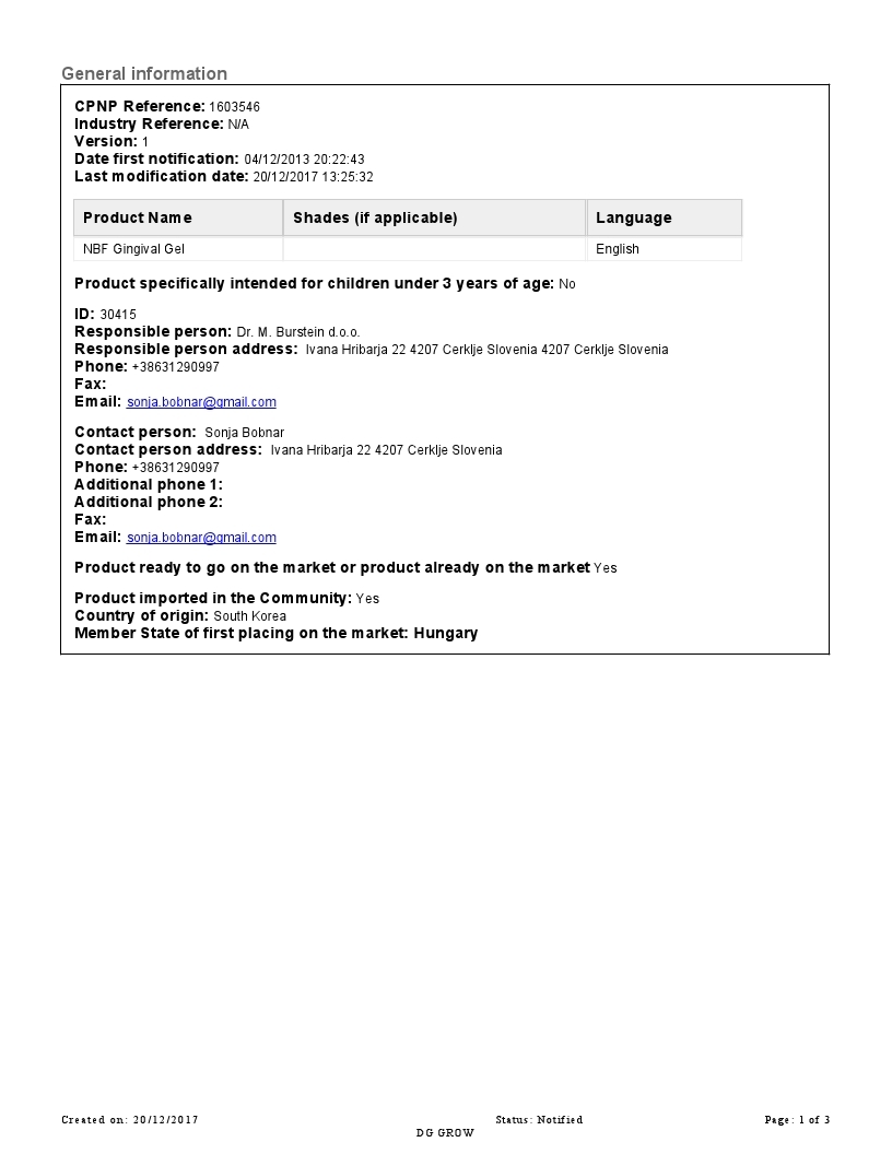 NBF Gingival Gel À¯·´ Áö¿ª Á¦Ç° µî·Ï °ü·Ã ÃֽŠÁ¤º¸ÀÔ´Ï´Ù.