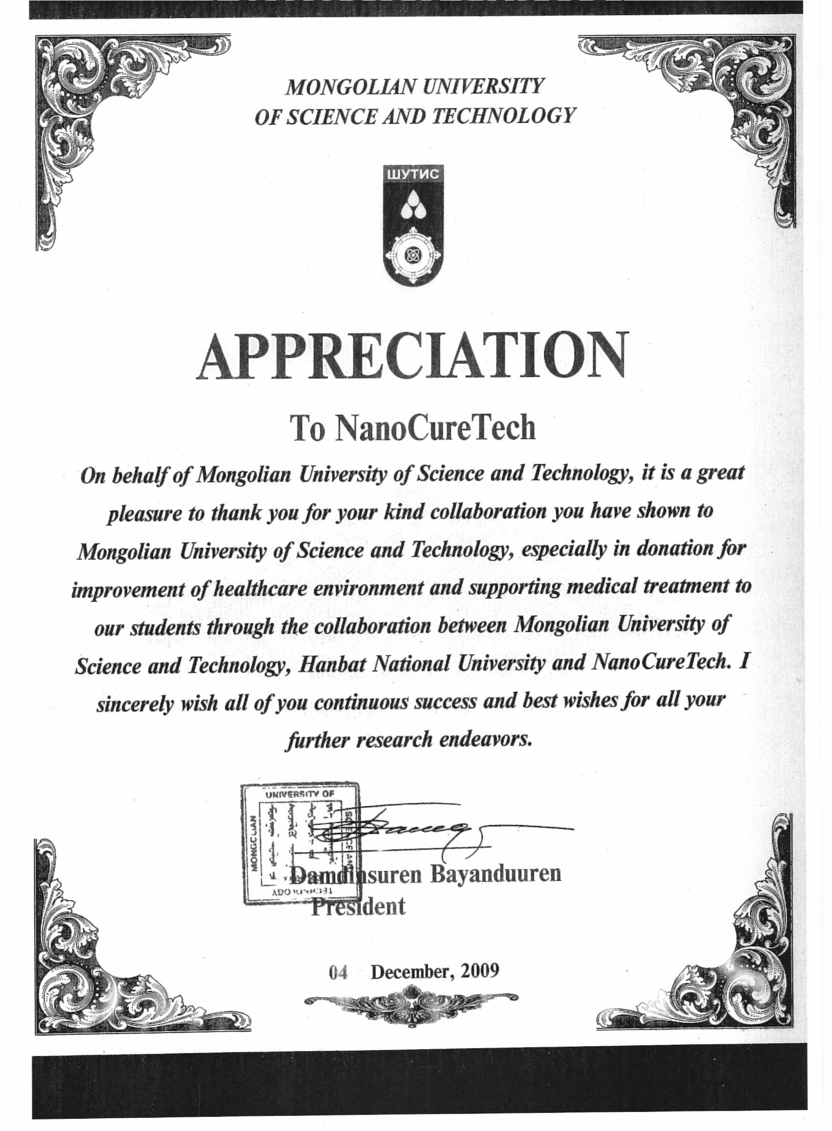 ³ª³ëÅ¥¾îÅØÀº ¸ù°ñ±¹¸³°úÇбâ¼ú´ëÇб³ Damdinsuren ÃÑÀåÀ¸·Î ºÎÅÍ °¨»çÆÐ¸¦ ¹Þ¾ÒÀ¸¸ç