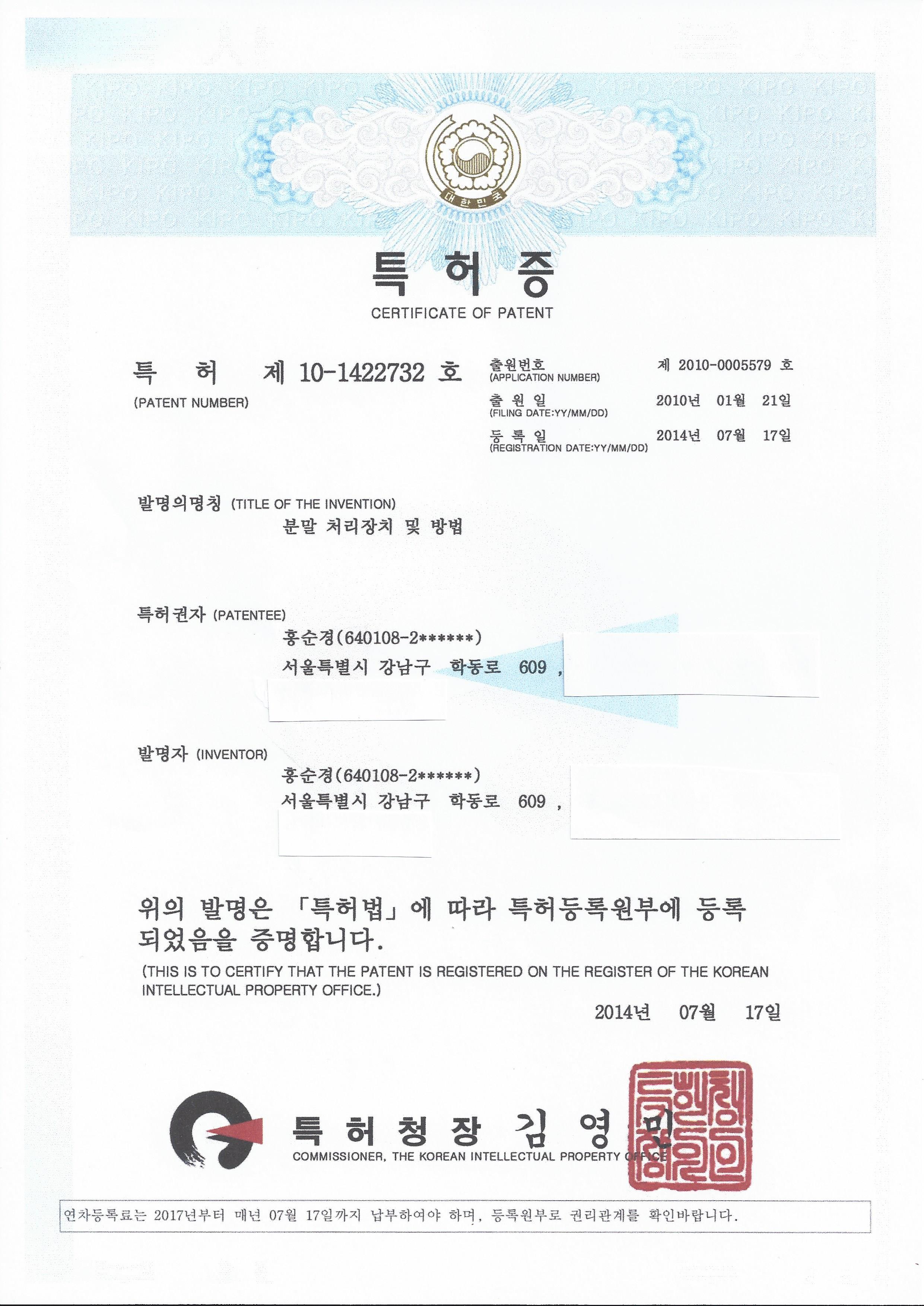 ºÐ¸» ó¸®ÀåÄ¡ ¹× ¹æ¹ý¿¡ ´ëÇÑ Æ¯Çãµî·ÏÀÌ ¿Ï·á µÇ¾ú½À´Ï´Ù.